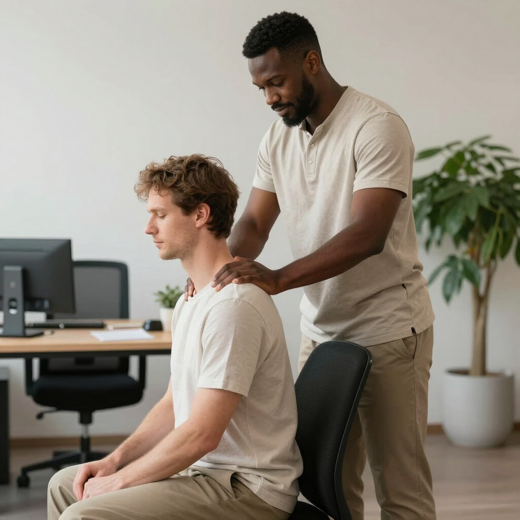 Alívio rápido de tensões musculares no ambiente de trabalho.
